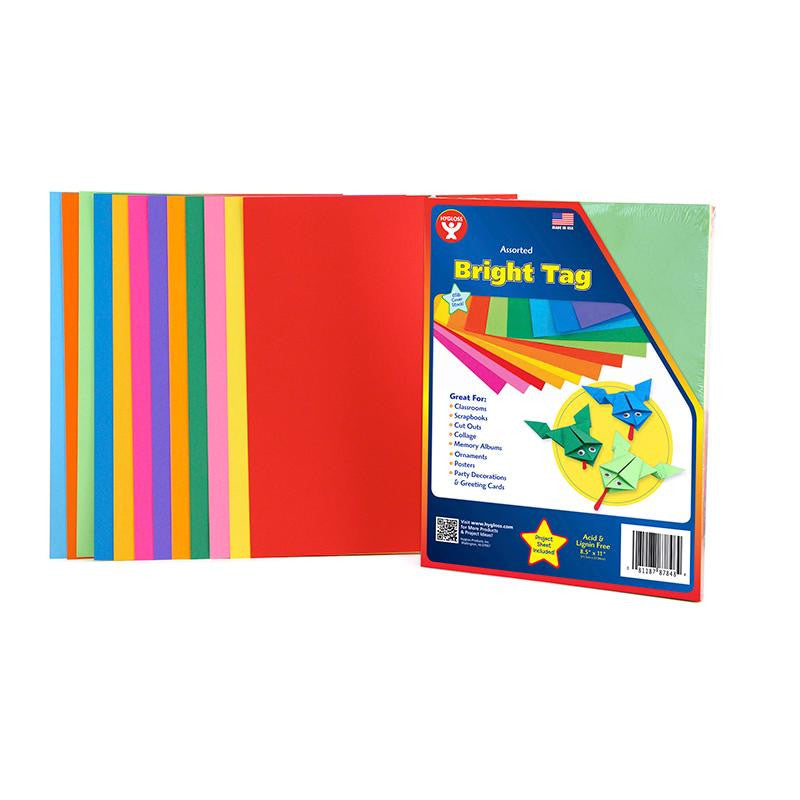 Bright paper tag boards are the heavy card stock version of that loveable crafting favorite bright colored paper. Using Hygloss' outstanding quality bright paper yields projects will stand the test of time. 8.5"x11". This light weight tag can be cut with scissors cleanly by small children, also holds its folds and laminates fabulously. Great for paper sculpture. Colors: Electric Lime, Cantaloupe, Raspberry, Daisy Yellow, Blue, Orange, Violet, Crayon Green, Butterscotch, Apple Red, Shamrock, White