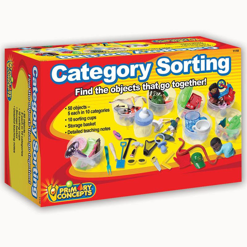 Children build classification, language, and thinking skills as they sort these 50 realistic objects into 10 categories: animals, people, toys, food, things to wear, baby items, vehicles, tools, musical instruments, and eating utensils. Includes sorting tubs, sturdy plastic basket, detailed Teaching Notes, and storage containers.