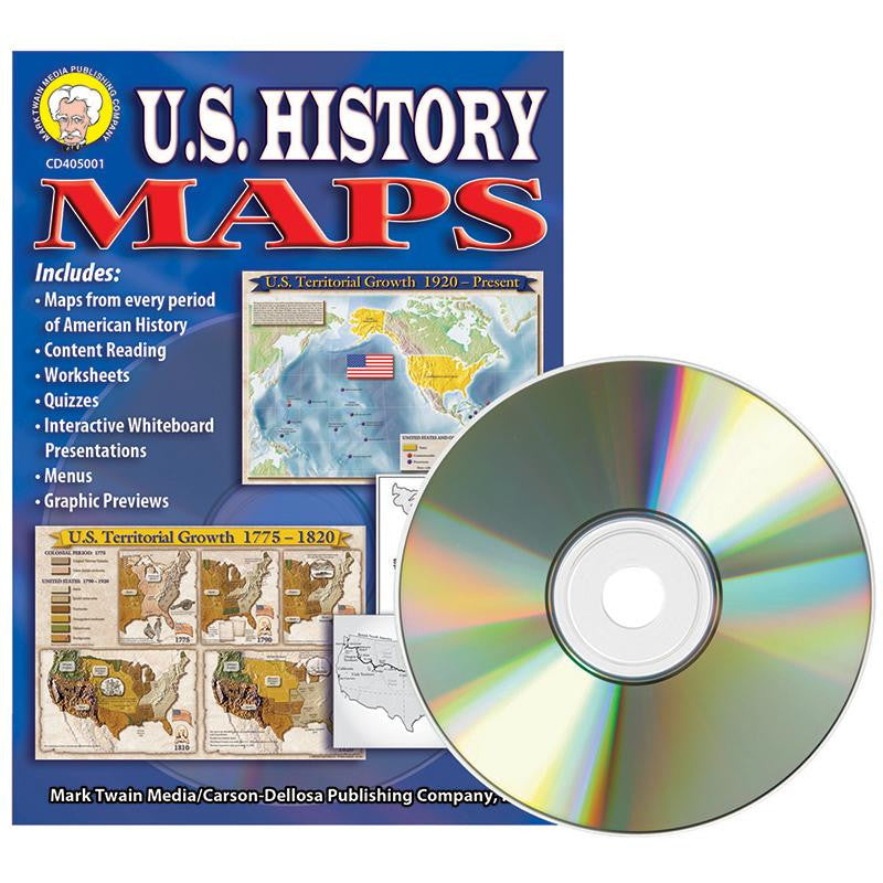 U.S. History Maps CD-ROM is loaded with historical map clip art perfect for worksheets, quizzes, interactive whiteboard presentations, and classroom decorations. Included are a variety of maps in four-color, grayscale, and line art showing the colonies, states, rivers, transportation, wars, and more. Interactive menus, graphic previews, and art lists make finding and using each piece of clip art easy. Meets NCSS and National Geography standards and is correlated to state, national, and Canadian provincial standards.
