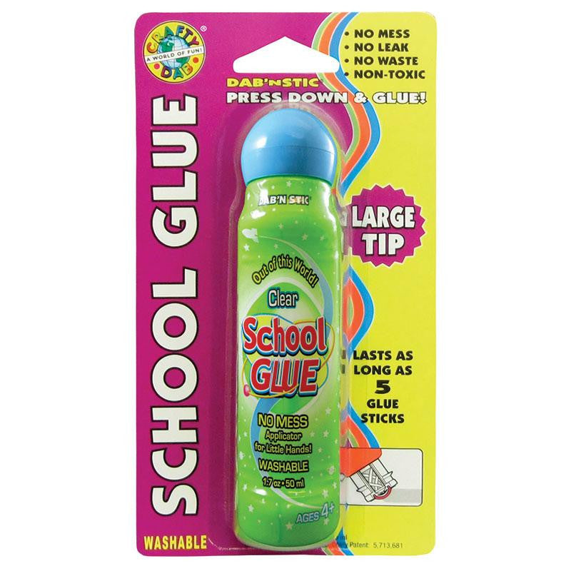 Easy to use with its no mess, no leak applicator, Crafty Dab School Glue is fast drying, non-wrinkling and washable. One bottle lasts as long as 5 to 6 glue sticks or two 4 oz. bottles of white glue.