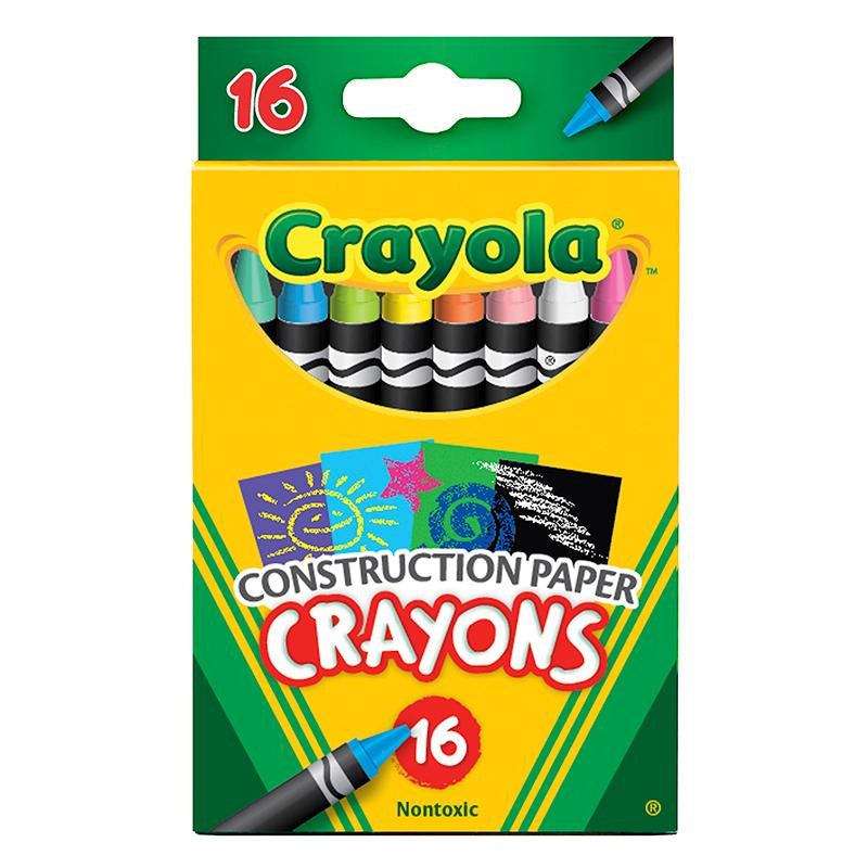 Crayola Construction Paper Crayons provide bright, rich color on any paper. Designed especially for construction paper, kraft paper and cardboard. Regardless of how light or dark your surface is, your artwork is bright and brilliant. 16 different colors.