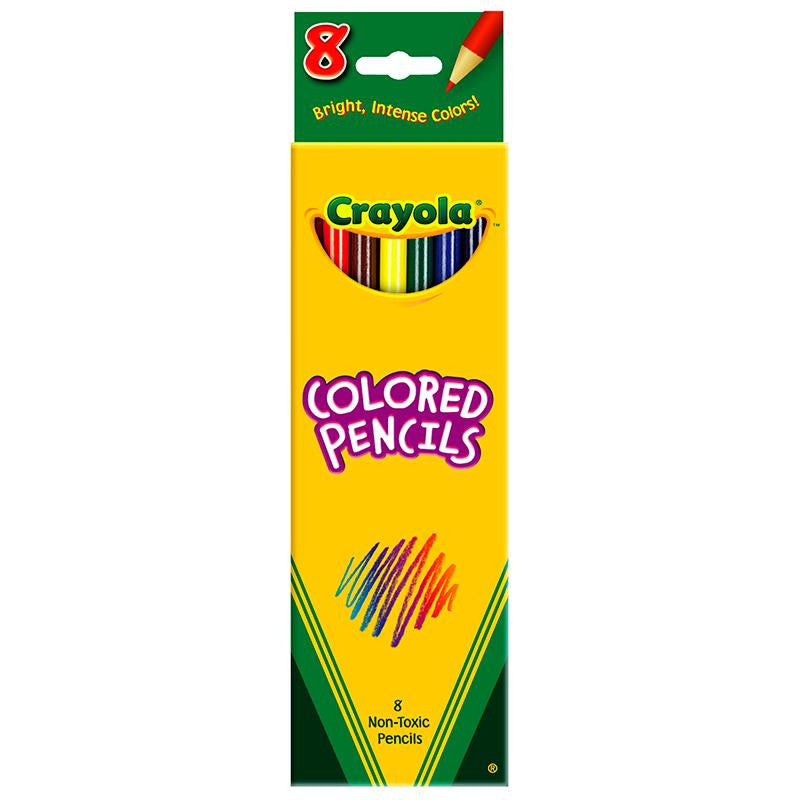 Crayola® colored pencils are thick, bright and easy to handle — just right for smooth drawing and coloring. Pencils come with name stamped right on each barrel. Pre-sharpened (3.3 mm tip) for immediate use.8 ct. Full Length, Tuck Box