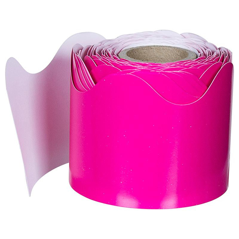 Enhance bulletin boards, highlight displays, and frame artwork with the vibrant Hot Pink continuous roll scalloped border. Each continuous roll scalloped border measures 36 feet x 2.25 inches. Continuous roll borders offer a simple solution for decorating any area of your classroom. Use these borders to frame doors, windows, shelves, artwork, bulletin boards, and more. Easy to customize, these borders are perfect to use individually, or cut and layer them to create your own unique style.