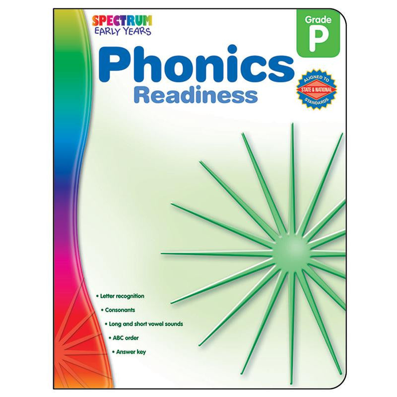 Designed to help learners strengthen basic skills, Spectrum Phonics Readiness instructs preschoolers how to recognize letters and their order, understand beginning and ending sounds, determine long vowel sounds, and follow simple directions. Features full-color, perforated pages; a variety of activities, including matching and coloring; and practice and preparation for grades to come.