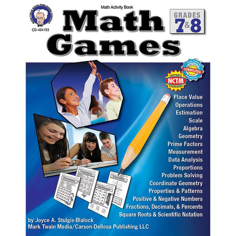 The teacher-tested Math Games books are designed for students to use various math skills while applying strategy to correctly solve three problems in a row to win each of the games. Concepts covered include place value, math operations, estimation, fractions, decimals, percents, proportions, properties, patterns, algebra, measurement, geometry, scale, data analysis, and problem solving. Meets NCTM standards and is correlated to state, national, and Canadian provincial standards. 128 pages