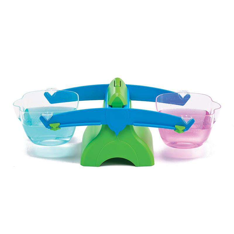 This durable plastic balance is designed for learning weight and hands-on measurement. The clear removable graduated buckets are easy for small hands to pour and measure. Buckets hold solids or liquids up to 500mL. Sliding compensator is for level and acc