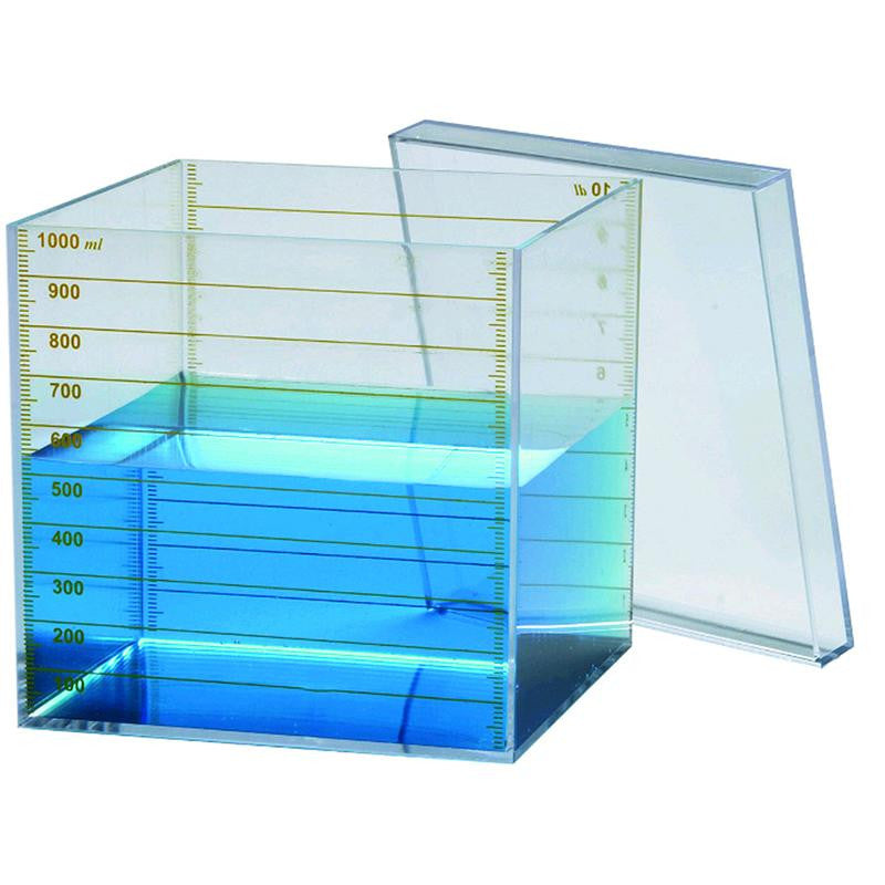 Clearly see the relationship between cubic centimeters and millimeters with this plastic Liter Cube. Holds solids or liquids and includes a lid for less mess! Marked every 100ml to 1 liter. A filled cube holds up to 1,000 ml or 1,000 centimeter cubes stacked 10 x 10 x 10.