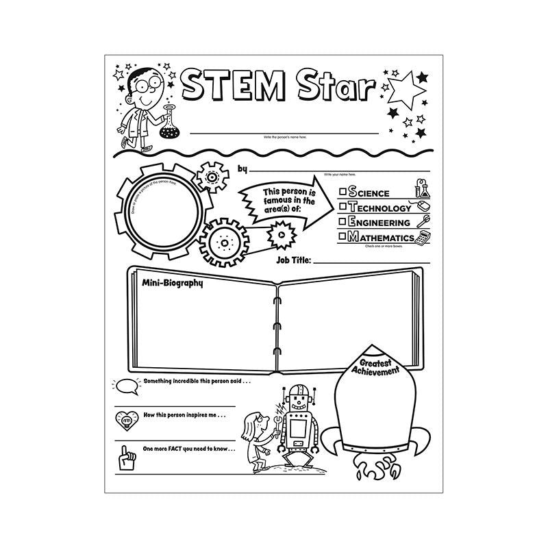 Get students fired up about careers in science and math with these fun, fill-in posters! The easy template guides kids through every step in the writing process to ensure a polished report on a standout scientist, tech guru, engineer, or mathematician. Includes 30 posters—one for every child in your class—and a complete teaching guide. A great way to support the all-important STEM initiative!