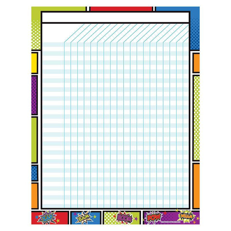 Create a learning environment that energizes and empowers with the Super Power collection. The Super Power incentive chartlet provides a stylish way to track and reward academic progress, and it features a separate writing space for each student. --Chartlets are excellent reference resources for students, teachers, and parents. Each chartlet measures 17 x 22 inches. Be sure to look for other Super Power products to create an exciting and cohesive classroom theme.
